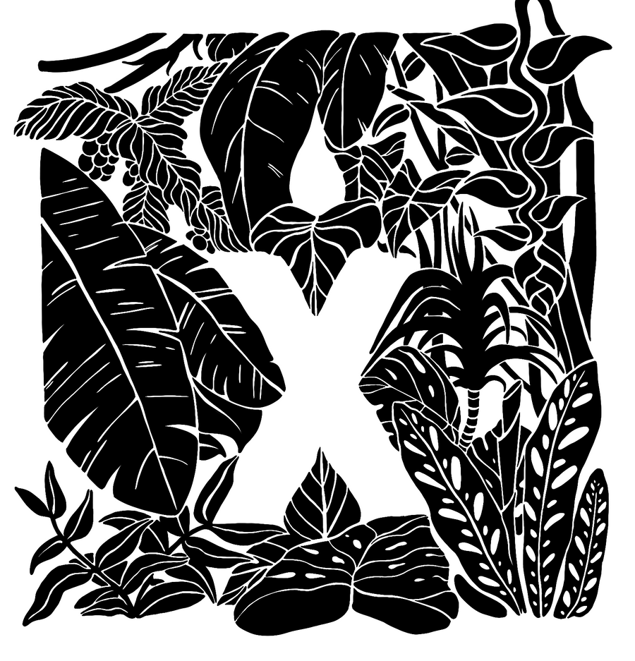 The final revision of the design was simplified to retain full detail in print, while retaining the same “X” silhouette and identifiable plants from the cafe.
