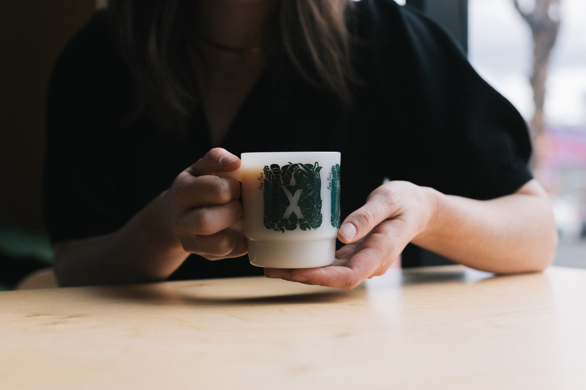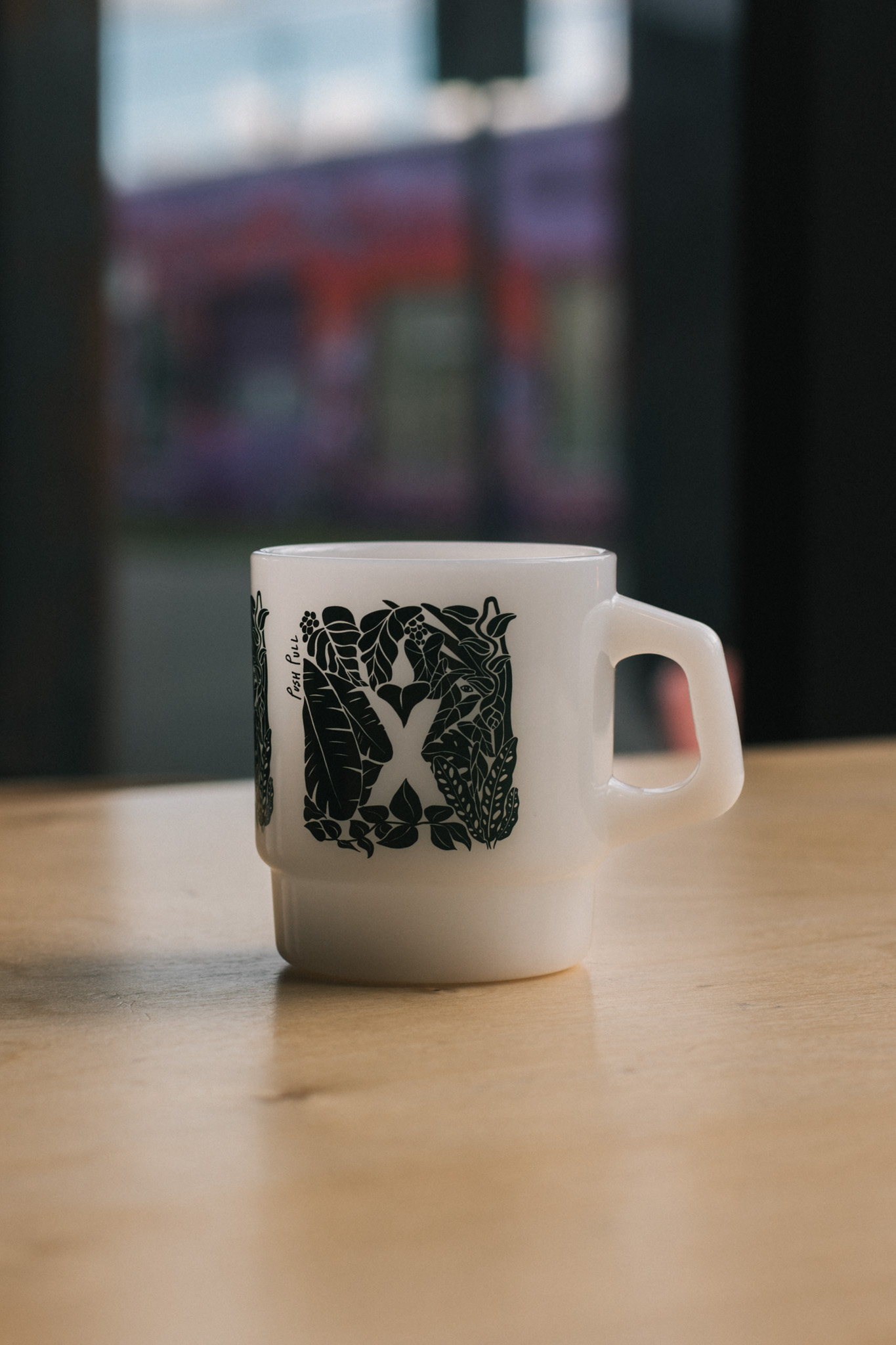 This mug is the first of several mugs designed by artists in our community. I was asked to design something for customers to collect and bring home, as their own small piece of PXP. As a long time barista at Push Pull, I wanted to highlight the role community has played in the growth of the cafe.